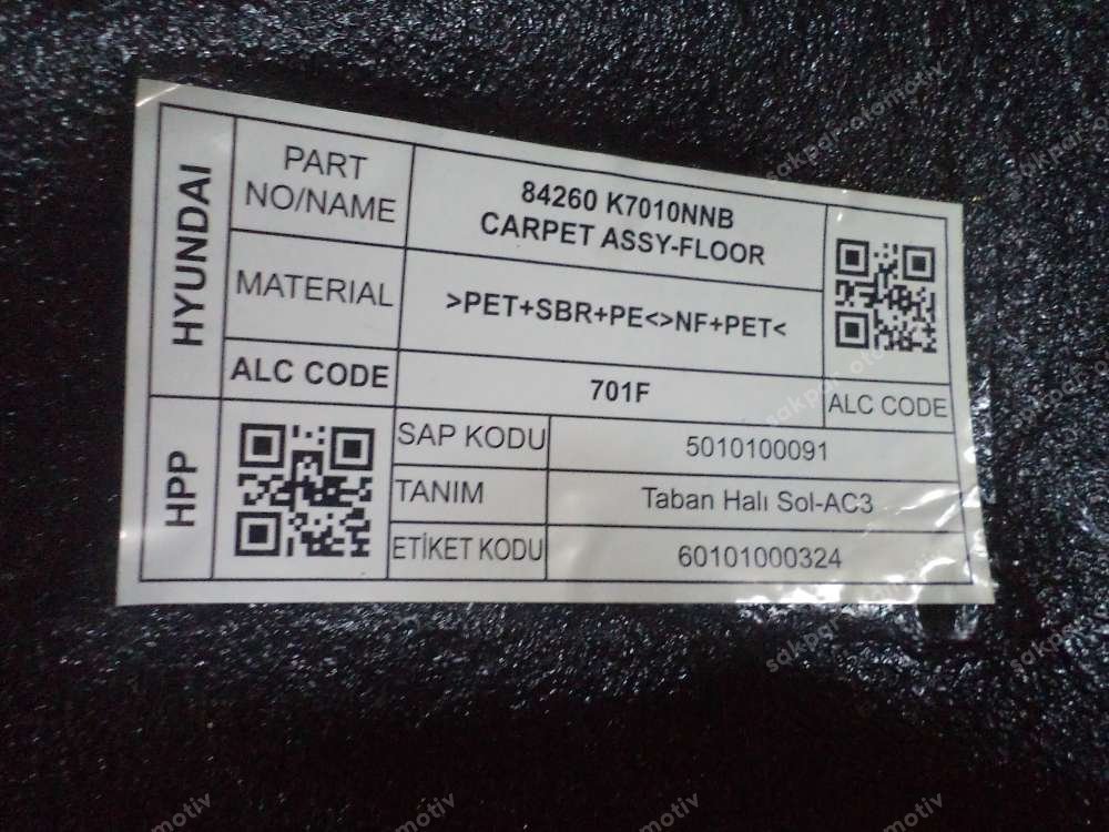 Sakpar Hyundai İ10 Taban Halısı Orjinal 84260-K7010NNB SP YP (2A)